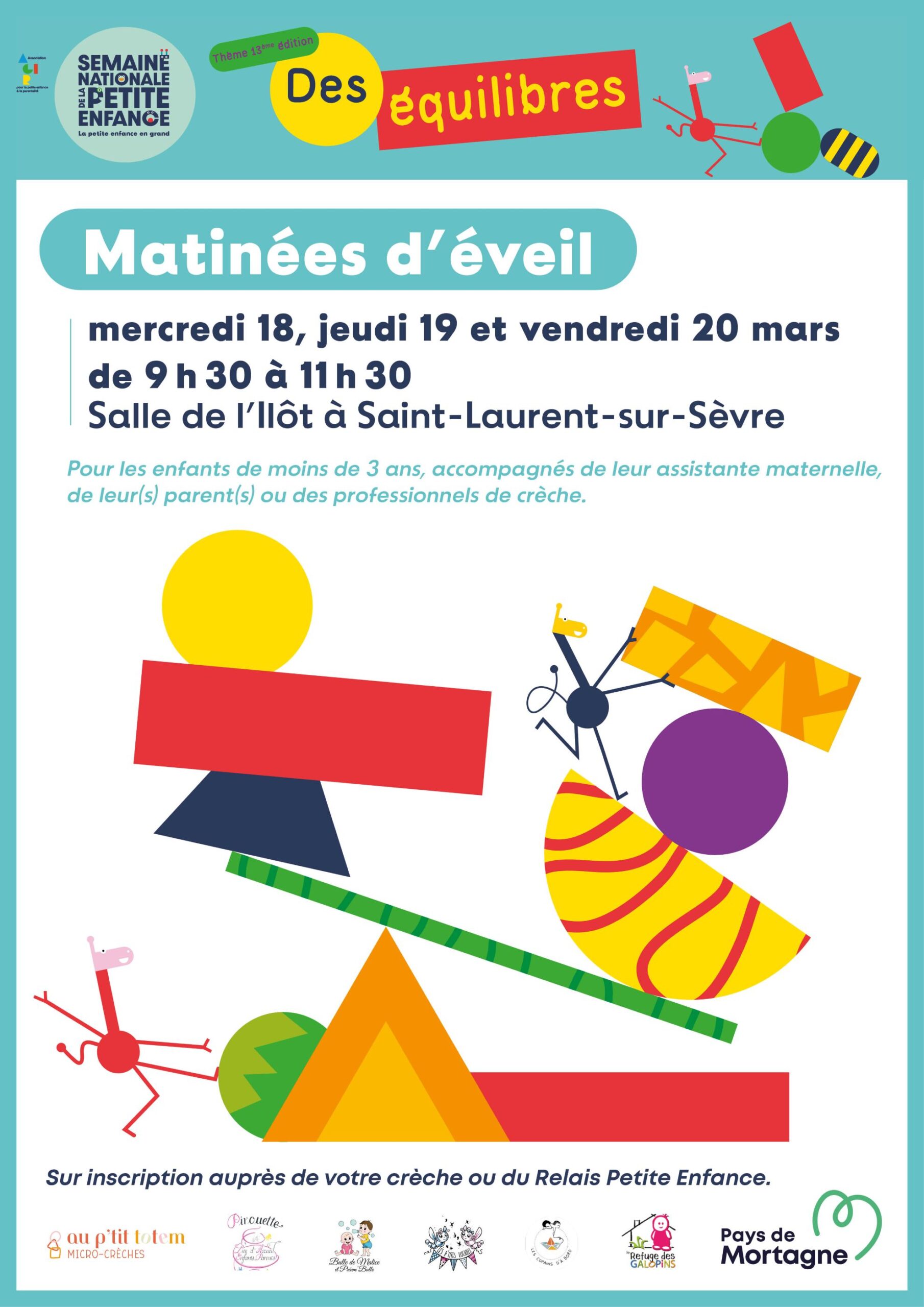 À Saint-Laurent-sur-Sèvre, une matinée d’éveil sera l’occasion, pour enfants, parents, assistantes maternelles et professionnels en crèche, de vivre et partager ces équilibres à travers le jeu, la découverte et la rencontre.