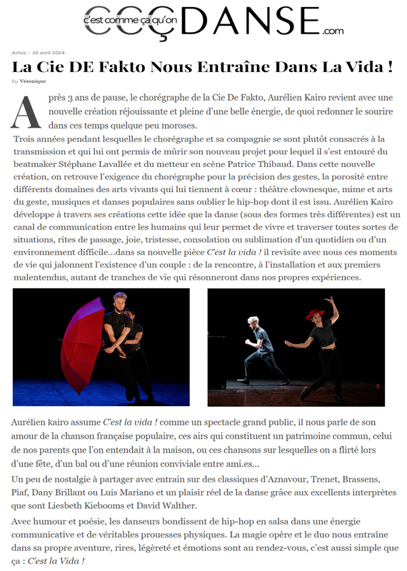 Spectacle "C'EST LA VIDA !" de la Cie De Fakto