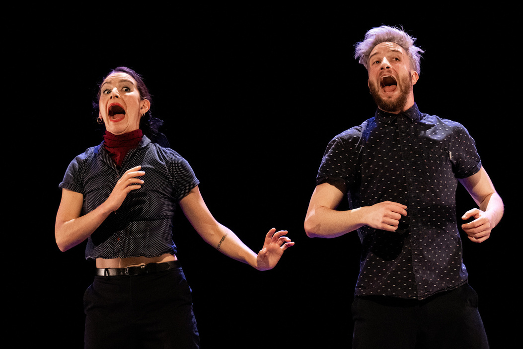 Les deux danseurs : David WALTHER et Liesbeth KIEBOOMS, réinterprètent avec humour les stéréotypes d‘antan sur les chansons cultes de notre patrimoine Français et Espagnol. Au delà des gags et des entrées clownesques, ce spectacle progressiste livre avec intelligence des messages d’amour et de tolérance.