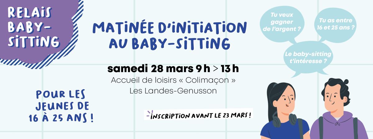 Le Relais Petite Enfance et le coordinateur enfance-jeunesse du Pays de Mortagne, organisent une matinée d’initiation au baby-sitting en partenariat avec les structures jeunesse et la mission locale. Cette matinée de sensibilisation se déroulera le samedi 28 mars, de 9 h à 13 h, à l’Accueil de loisirs Colimaçon aux Landes Genusson.